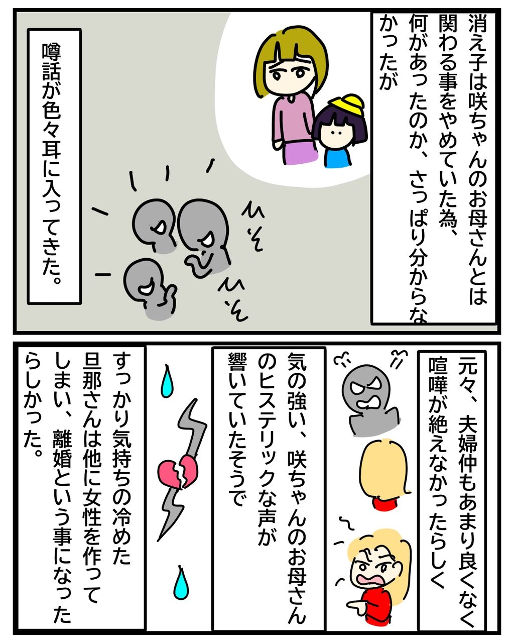 咲ちゃんのお母さんの消え子に対する、異常なマウントは自身の辛い結婚生活の裏返しだったようです。